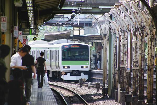 山手線は205系を追い出したE231系の天下、被写体としちゃぁ難しい感じでしたねぇ。 このカットもE231系狙いじゃ無くって、右っ側に写ってる古レールの柱なんです。ただ、 柱だけじゃ愛想がないんで、山手内回りの入線に合わシャッター切った見たんです。