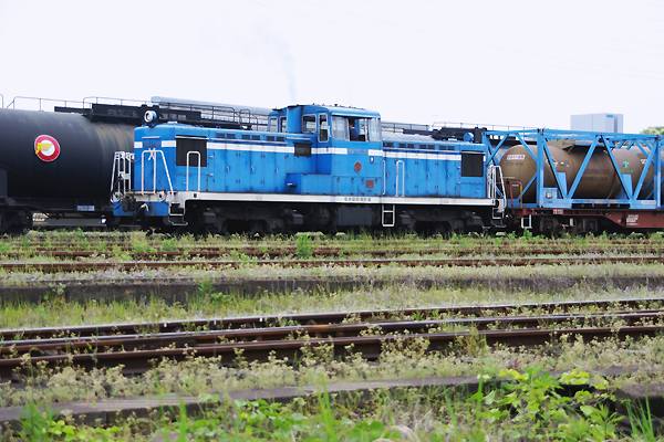 名電築港からダイヤモンドクロッシングで名鉄築港線を突っ切って南へ向うてぇっと、 コチラも貨物専用名臨東港駅がございます。鉄も非鉄も構内進入禁止の貨物専用 東港駅なんで、実際はヤードの周りを廻りながら撮った、スナップを御笑覧頂きます。 先ずは、南港線踏切脇の名臨本社正門向う道のから撮った、ND552形の5号機です。 この一つ目ライトの凸型ディーゼル機関車に懐かしさを感じたアナタ、国鉄時代から 鉄な道楽に嵌っていたんじゃございませんか?DD13タイプって懐かしっすよね。後に 見えてる国鉄色のND552 13号機は、正真正銘元国鉄DD13 308号機でございます。