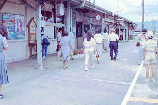 前回に引き続きカビ付き半腐りネガカラーでお届けは、赤字対策と称して解体された 国鉄から1年を待たず消えた、山野線の中枢を担った薩摩大口駅撮りでございます。 島式ホーム2番線に到着したキハ20からは、それなりの乗客が在った様子ですねぇ。
