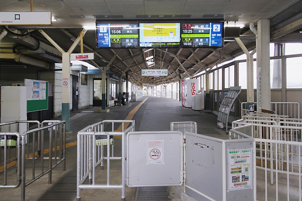 養老鉄道の改札口にゃ、自動改札機なんてぇ野暮なモノはございません。乗車券は 全て改札職員さんが、パイプのラッチん処で入鋏(スタンプ押印)又は視認なのです。