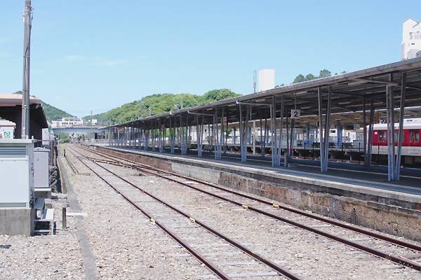 参宮線のホームでございます。なので、早速近鉄鳥羽駅から連絡橋を通ってJR側へ 行って見ってビックリ!今やJR各社人減らし合理化の敵と化した機関車が、かつて 夜行急行「伊勢」も到着や出発の度に使用したであろう。機回し線が残ってました。