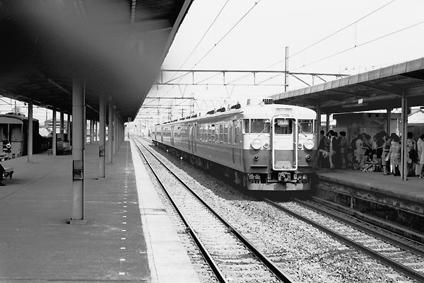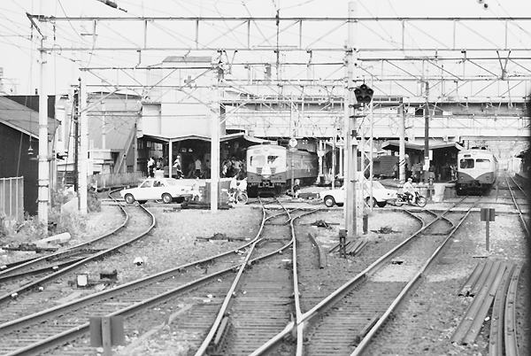今回の駅撮り探検団は、松原団員が残してくれた銀塩中から東海道本線富士駅での スナップをアップです。146kmのキロポストがある4番線ホームに入線して来る80系は、 恐らく熱海行各停458Mでございます。正面2枚窓湘南フェース・オレンジとグリーンの 湘南色、その元祖の80系駅撮りも説得力イマイチのモノクロじゃ、なんとも情けない。