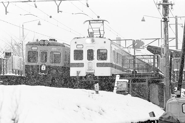 今年初っ端のHM探検団でアップしたインチキHM、1300形HB車の「新聞」を梅が丘で 撮った松原物故団員が、そのまま線路沿いを歩ってった、築堤上に在った複線時代 豪徳寺駅撮りをアップです。相対式2面だったホームに並んだ列車、左っ側下りにゃ オレンジにブルーの旧カラーで出場した、初期製造の4000形4016F江の島行各停で ございます。この4000形、車体は2600形とほぼ同じなんで、高性能車に見えっけど、 臓物の方はHB・ABFの使い回しだったんで、80年代にリニューアルする迄は、立派な 吊り掛け車でございました。その4000形の右っ側にゃ、戦後混乱期の車両不足ん時、 63系製造割り当てを受けて、導入したバリバリの吊り掛け車1800形の各停新宿行。 流石に車体は鋼体に更新済みなんだけど、面構えは63系食パン平妻まんまですね。 1970-2 Photo by 松原の親方