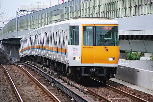 次ぎに現れたのが、地下鉄以外じゃ唯一サードレール集電靴装備車両を所有してる、 近鉄のモ7020系下り線列車。しかし、如何見たって近鉄らしさ0%のフォルムですね。