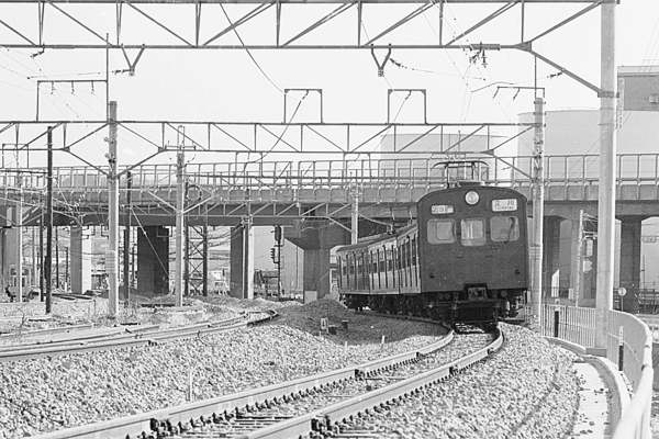 今回は、松原物故団員撮影の銀塩からホームからの駅撮りじゃ無く、改札から歩って 4・5分の駅傍線路っ端撮りをアップでございます。ってな事で、スキャンしてモニターに 映ったのは、高速道路を潜りカーヴを描いて接近して来る旧型国電73系4連立川行、 とうの昔に絶滅しちまった車両ございます。ここ迄は、自分で撮って無くっても、画像 見りゃアッシも分かちゃうけど、それ以上の事が分かん無いてぇっと、アップした時に コメが書けないんで、ググって調べちゃいました。撮影当時(1974年)行先に立川を 表示して旧型国電が走ってったのは、南武線・青梅線・五日市線の3路線だけでした。 そして、73系の走ってる一番外側の線路に横にも線路が、数条見えるんで撮影した のは、分岐駅の線路っ端じゃないかと推測致しました。で、思いついたのが、国道を
