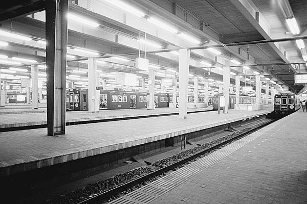阪急のターミナル大阪梅田駅は、ズラリ並んだ10面9線の頭端式ホームを誇る、私鉄 最大駅でございます。その大阪梅田駅が、JRの北側にホームを1973年に移設から 今年(2023年)の11月23日で50周年を迎え、阪急も気合を入れた記念のイヴェントを 展開中でございます。ってな事で、駅撮りの方も50周年に肖っちゃおうてんで、HDを 漁って見けったのが、やるんだか、やめちゃうんだか、大騒ぎしてる大阪万博2025の 前、1970年万博の時に撮った旧阪急梅田駅京都線ホームのスナップです。2号線に 停まってんのは、戦前の名車新京阪デイ100のDNAを受け継いで製造された、一見 初期高性能車も実は、吊り掛け駆動1600系2ドア時代です。撮影時点じゃ宝塚線と 神戸線は、既に東海道本線北側の高架ホームに移設済み、京都線のホームだけが、 未だ戦前から在った地平ホームから発着しておりました。撮影してから50年、京都線 だけだけど、阪急梅田地平ホームを記録に残せたのは、ラッキーでございましたが、 何故か撮ったのは、アップの1コマのみ、デジカメが、50年前から有りゃヨカッタのに。