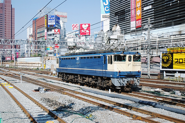 トンデモナイ事が起きちゃった2014年の元日、なので新年定番ご挨拶は、抜きにして イキナシ本題の駅撮りは、高度成長期貨客の鉄道インフラを支えた、国鉄時代からの 主力直流電気機関機EF65をアップしてみました。先ずはPF型1000番台は、1978年に 全国に数ある庫のトップ オブ ザ デポット東京機関区に新製配置された、1110号機で ございます。このEF65 1110号機は、残念ながら2000番台改番を待たず、新鶴見→ 田端運転所でお役御免となりました。 山手線 新大久保 2004-10
