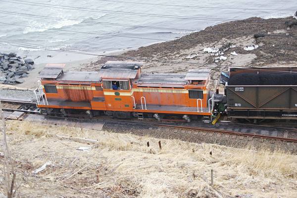 春採側の12両は、再度海側の荷役線D401の推進運転入り、石炭投下後春採方面に