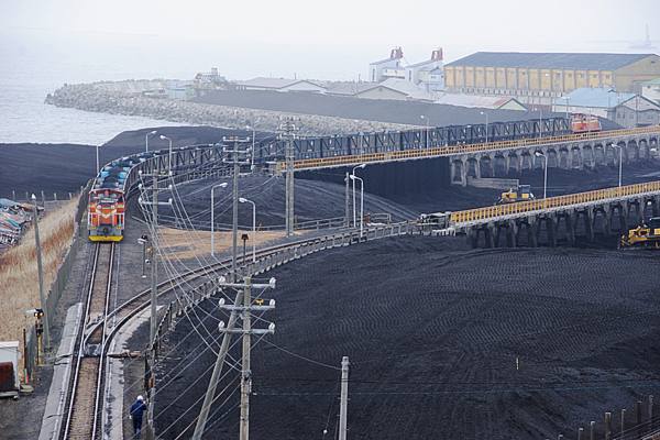 終着=貯炭場の知人には、ググったけど正式名称不明、ポッパー車積載石炭投下用 橋梁仕様の施設が見えました。到着した運炭列車は、最初海側の荷役線に進入して、 24両編成セキ6000形前半分の石炭を貯炭場に投下後に春採方面にスイッチバック。
