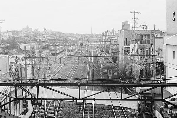 東横線は日比谷線と相互乗り入れ、大井町線が田園都市線だった頃に自由が丘で 松原物故団員が、スナップした駅撮りを蔵出しスキャン致しました。なお原版ネガは、 ハーフサイズなんで画質の方は、それなりでございます。東急線自由が丘は、高架の 東横線と地平の田園都市線(現大井町線)が直角に交わった構造、1コマ目は、その 東横線上りホームから地平の田園都市線下り方面を見下ろすアングルでございます。 右側に上り線を走ってるのは、デハ3450形先頭の旧3000系4連大井町行、それから 左側に見えるのは、当時は健在だった自由が丘車庫、停まってるのは、左旧6000形 右旧7000形でございます。この車庫施設、現在は東急お得意の商業施設に変身済。