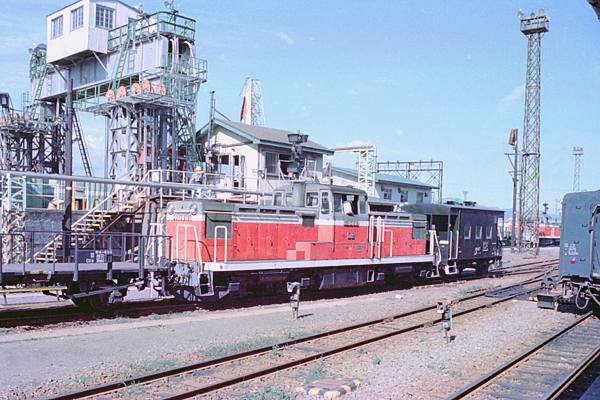 今回は函館駅ホームと多分連絡船乗船用通路から、毎度お馴染み松原物故団員が 駅撮りした、航送貨車引き出し・押し込み作業のでございます。先ずは、旧4番線から スナップした、DD13 518号機の貨車航送入換作業なんだけど、アッシが撮ったんじゃ ないんで、押し込んでんだか引き出しかてんだか、判断できないカットでございます。