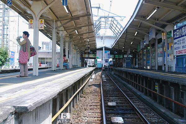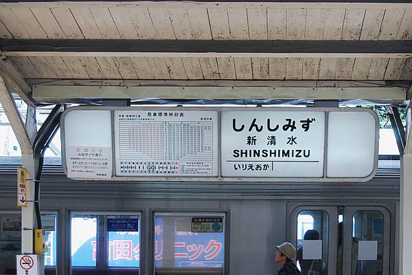木造の上屋を支える古レールの支柱に梁に板物の番線表示、騒ぐほど古くも無いし 新しくも無いけど、寂れた感じのローカル私鉄とは、無縁の佇まいの新清水駅です。 それから、左っ側の人が、立ってる1・2番線ホームの更に左、1番線の向こう側にも ホームが、在るの確認できますか?これって、今無き清水市内線用ホームなんです。