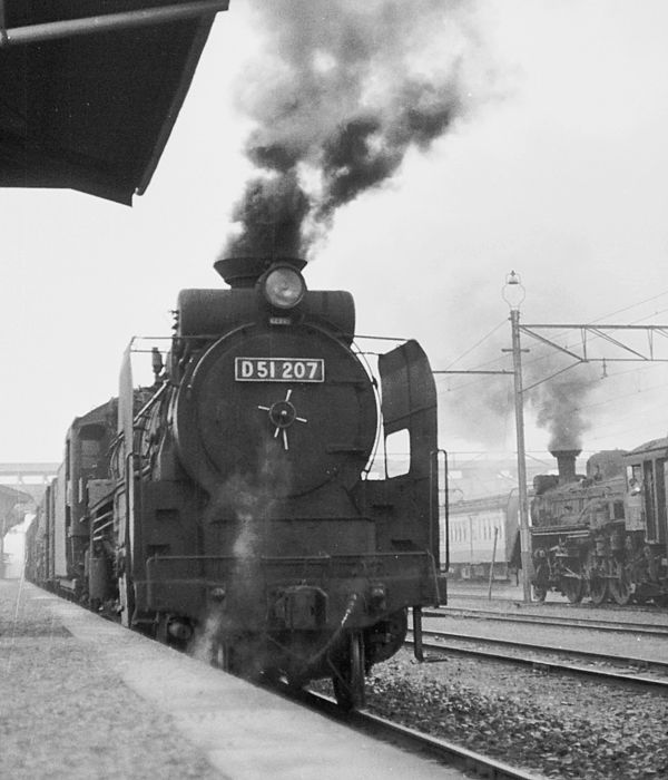 最後は、5番線上り本線に出発現示待ちで停車中、「八」D51 207号機です。右側にゃ、 秩父鉄道の側線で入換仕業中のC58と秩父デハ100系が、写り込んでます。なお原版 ハーフからスキャンなので、画像クオリティーの方は、それなりでございます。 国鉄 八高線 寄居 1967 4 Photo by 松原の親方 |