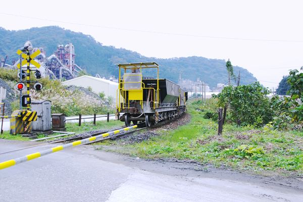 未だ健在だった大糸線のキハ52を撮りに行った時、ついでに訪れたデンカ原石線の 駅撮りをアップいたしました。って、全線自社工場敷地内をを走ってる、貨物専用線の 通称原石線なんで、実際にゃ原石線終点原石積載場を駅と言い張っり、傍の公道上 からスナップした、いかさま駅撮りでございます。全くの思い付き、走ってるかどうかも 分かんないまま、原石積載場付近の線路に沿った公道上で待ってると、青海川橋梁 手前の踏切が作動、目の前に推進運転で空返ホッパー車が、通過していきました。