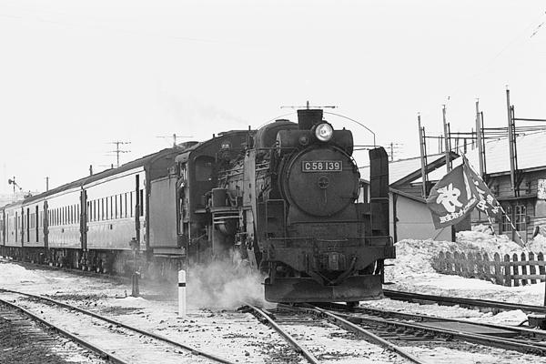 間もなく(2025/03/15)廃駅となる、東根室に代わって日本最東端の駅になる根室の 駅撮りを松原物故団員撮影の銀塩でアップです。その根室に腕木信号の場内踏んで 到着するのは、釧路6:41発「釧」C58 139号機牽引の混合列車混441レでございます。 当時根室本線末端区間釧路〜根室間には、C58牽引混合列車1往復が有ったけど、 日頃の宿は夜行列車のビンボ〜鉄でも混441レを撮る為には、釧路以東の何処かの 街での宿泊が、必須でございました。何故なら、道東各線で撮影する為の定宿423レ 釧路到着時刻9:19じゃ、当然6:41発の混441レの撮影にゃ間に合わなかったんです。