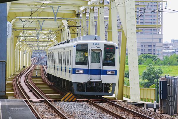前回に続きまして、15年前の伊勢崎線小菅駅撮りでございますが、今回は15年後の 今でも1日撮ってりゃ遭遇出来ちゃう車両をアップでございます。先ずは、亀戸線から 回送列車で大師線に向かう、2両編成ワンマン仕様の8000系8568Fでございますが、 ワンマン仕様2両編成10000系進出著しく、亀戸線・大師線の8000系は、残りわずの 2編成(1編成かも)なっております。なお、写真の8568Fは、既に1年前北渡瀬へ。