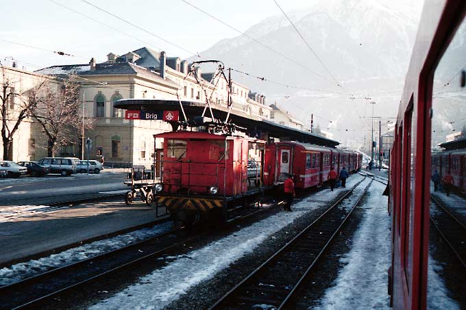 軸配置はBのロッド付き、奥に見えるのがSBB・BLSのBrig駅本屋です。