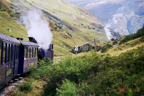 前方の白煙は交換待ちの2号機 Gletschhorn 号。