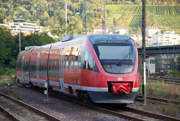 に無事到着。 Bingen Hbf を名乗るだけあってコノ駅からはナーエ川に沿って Bad Kreuznach 方面に
