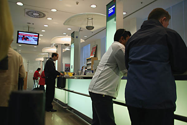 この前冬のヨーロッパで散々な目に会ったに懲りもせず、又もや行ったオジサン鉄の欧州旅行。でも今回は季節抜群!暑くも寒くもない秋のヨーロッパだぜ。ところが流石にオンシーズン、8月の中旬に旅行会社にスイスまでの切符ちょ〜だいなって電話すると、’行きも帰りも満席です。’やっと手に入ったのはルフトハンザのサイトで買える正規割引「e チケット」ってやつでした。07年9月20日、当初の到着地 Zurich 予定を変更して着いた先は ドイツの空の玄関 Frankfurt Main 国際空港。