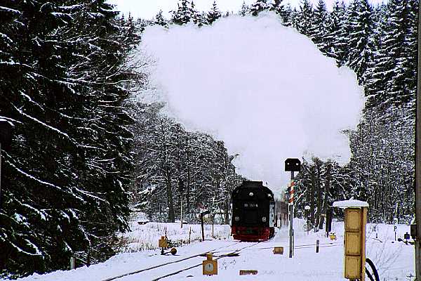 ハルツ山地を横断して来たNordhausenからの直通列車が逆行で場内へ進入