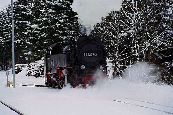 Brockenから到着後、折返仕業の為、雪煙を上げて機回し中の蒸気機関車