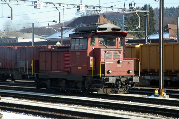 1959年からSLM, SAAS, ABBなどで41両製造された、C型ロッド駆動の入換用電気式ディーゼル機関車 Em 3/3。1次型と2次型(更新か?)があり、写真の18815号機は2次型です。出力326kw、自重49t、 全長10.02m、最高族度65km/h です。
