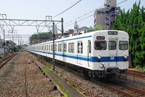 原型顔8000系も遂に梅雨明けを待たずにリタイアと相成りました。7300・7800系の 更新車5000系と戦前派3210系など更新車3000系も同じ面構えに揃え、東武と言えば 良いに付け悪いに付け、思い浮かべるのがこの顔でございます。古くは吊り掛け車を 葬り去る悪玉にされたのも、今は懐かしい記憶でしょうか。鉄な人達の色々な思いが 交錯する8000系ですが、東武鉄道近代化の大功労車なのは紛れも無い事実ですね。 その功労に報いる為か、引退興行には「Thanks 8111」のヘッドマークを誂て貰っての 登場になりました。しかし、さすがに東武の伝統でございましょうか、目の前に現れた 8000系に付いていたのは、相も変わらずのチッコクテ見え難いHMでございました。 東武東上線 鶴瀬 2011-6 |