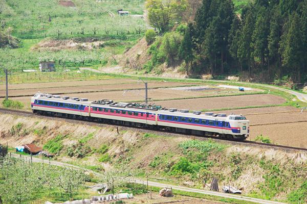 ヘッドマークのご紹介なのでございます。この何だか判んないHMをの列車は秋田と 青森を結んでいた「かもしか」なんです。ところで、「かもしか」なる貧相な3両編成の 列車はナント!特急なんですぜ!それも天下のJR東日本の特別急行なんですぜ。 と言う事は当然乗車券の他に特急券と言われる、快適な設備や速達への利便性を 請ける為の特別な料金を払わなければ、乗れない仕組みなっているのでございます。 そうすると、上越新幹線リレー列車485系快速「くびき野」と485系特急「かもしか」の 違いてぇのはイッタイ何なの?秋田〜青森が約186km自由席特急券\2100だから、 座席に掛かった白いカヴァーが\2100なの?どうも近頃料金体系てぇのは思鉄にゃ 理解出来ませんねぇ。 奥羽本線 石川〜大鰐温泉 2009-5 |