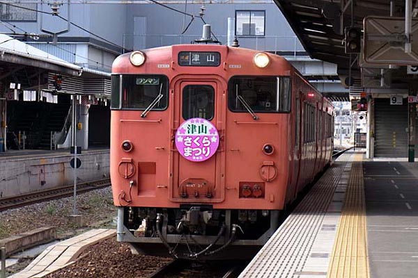 「津山さくらまつり」のHM付いているではありませんか!どんな車両でも何故かHMが