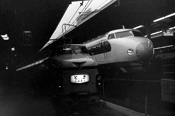今回は東京駅で0系新幹線と競演のオマケ付き。もう夕方だったのか、はたまた単に 浮かび上がったのでございます。今どきこんな光景が実現したなら激パ必死ですが、 当時はごく日常の駅風景。このカットも買ったばかりの一眼レフの練習の為に撮った もので、何気なしの一枚でした。でもよく見ると181系「とき」が停まっているホームは 在来線の15番線、0系新幹線も広窓タイプでこの頃は12両編成でした。露出不足の 情けないワンカットも、振り返って見ると色々な記録が残っているものですね。 東海道本線 東京 1968-3 |