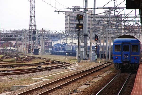 アット言う間の2週間、3月分のHM探検団をアップしなきゃならないけれど、なかなか コメントが浮かんでこないのです。なので、今回は写真に頼った紙芝居的コンテンツで お見せしちゃいます。そこで登場は「北斗星」、’えぇ〜また「北斗星」かよ何回出しゃ 気が済むのかよ’なんて言われちゃったって構いません。両耳塞いでアップなのです。 数年前、津軽海峡挟んで出掛けた鉄の旅、泊り函館となりゃ、これはもう早起きして 「北斗星」を駅撮りするしかございません。しかし、体が付いていかずホーム先端に 着く前にED79に牽かれた「北斗星」が入ってきちまいました。なので同業者写りこみ。