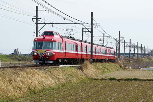 名車と言えば、これはもう名鉄7000系しかございません。その7000系パノラマカーが 定期運用から外された後、最後まで残った7011Fが、長年のご愛顧を込めて数回の 特別運転を行ないました。っという事で、今回のHM探検団はパノラマカー引退興行の 第一弾として運行された「南知多おもちゃ王国 3周年記念号」なる長ったらしいHMを 付けた企画列車の回送を御覧頂きます。早いものでパノラマカーが、鉄路から消えて 今年でもう5年の歳月が過ぎました。1961年に初めて運用に入り48年間走り続けた 7000系ですが、引退から5年後の今見ても走行機器関係は別として、パノラマカーの 名に恥じない前面展望の車体は全く時代を感じさせないデザインなのでございます。 しかし、近頃の新造車を見るってぇと、パノラマカーの様に鉄な人にも、非鉄な人にも 夢を与えてくれる名車ってのは、もう金輪際現れないかと、憂うのでございます。 名鉄河和線 坂部〜阿久比 2009-3