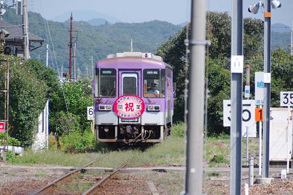 真っ直ぐ帰宅なんて事は当然無く、加古川線〜神鉄粟生線〜阪急経由で新大阪まで 参りました。その時粟生で北条鉄道に寄り道、入線してきたのは3セクの定番気動車、 富士重工LE-DCブランドのフラワ2000形でございました。そのフラワ2000形、板物の 「祝開業播州鉄道100周年・北条鉄道30周年」なるヘッドマークを付けておりました。 要するに、100年前に今の加古川線や既に廃止になった鍛冶屋線・三木鉄道ナンカと 一緒に私鉄播州鉄道として開業したけど、戦争中お上にカツアゲされ国鉄になったら なったで、加古川線以外は特定地方交通線なる廃線候補に見事当選、それから30年 今も北条鉄道だけが3セクとして生き残っているんですから、開業30周年ってぇのは、 本当にお目出度い事なのでございます。 北条鉄道 粟生 2015-9