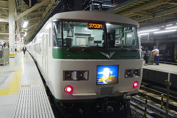 満員列車をホームで待っていると、その虚ろな目に映るは、特急仕業を終えて庫へ 帰る回送列車でございました。な〜んだよ空で走らせる位なら、客扱いのスジに引き 直してワシ等を乗っけろ〜っと言う、声なき声に答えたか、定かではございませんが、 赤字に苦しんだ国鉄末期に、ホームライナーなどの名称で、特急仕業終了の列車を 何本か回送扱いから客扱いに変更したそうでございます。そんなホームライナーの 一つが、東海道本線を今でも走っている「湘南ライナー」なのです。僅か510円払って 曲りなりにも特急用185系にゆっくり座って、一杯呑みながら帰宅出来るんですから、 走り出してから早30年「湘南ライナー」は働くオト〜サン達のオアシスなのです。 東海道本線 東京 2015-9