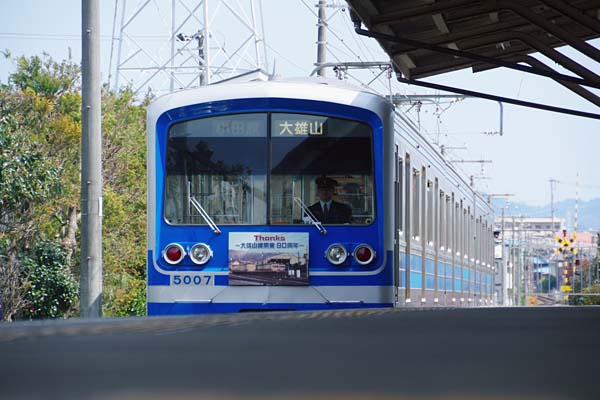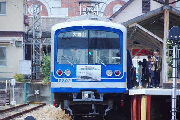 最後は5013F下り側に付いているHM、ホール集電でへそライトの電車が写ってるんで、 このヘッドマークの写真だけは如何やら戦前に撮られたモノと思われるのございます。 以上「開業90周年」ヘッドマーク尽くしの大雄山線訪問でございました。 飯田岡 伊豆箱根鉄道大雄山線 飯田岡〜大雄山 2016-3