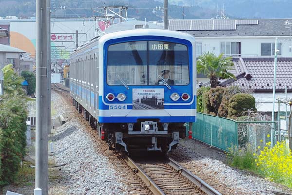 5007Fクハ5504のHMは、小田原駅に到着するガーランドの吊り掛け電車、形式は? 富士フイルム前