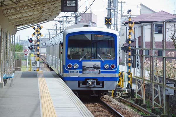 その5003F小田原側に付いたHMのデザインは、旧西武色のコデ165似の吊り掛け車。 大雄山