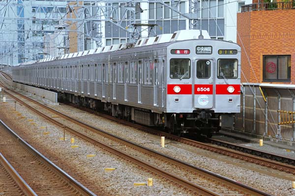 今年で(2016年)開業50周年を迎えたそうでございます。そこで日頃鉄には無愛想な 東急電鉄でも5000系と8500系其々1編成に「50th ANNIVERSARY」のヘッドマークを 付けて運行中と小耳に挟み、ネットで運用を調べると5000の方は遥か埼玉県ですが、 8500は半蔵門線走行中でございました。田園都市線の開業50周年のHMなんすから、 撮るならヤッパ新玉線開通時から走っていた8500系てぇのが筋かと思い、溝の口で 待つこと30分、やって来たのはどんなデザインなのか、色が薄くってちっとも判らない ヘッドシールを貫通扉に貼っけた8500系でございました。開業半世紀を迎えた記念の HMが、シールてぇのは痛いよなぁ〜。E231疑きの5000系は、板物付けてんのにね。 東急田園都市線 溝の口 2016-4