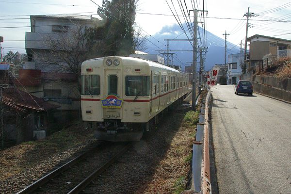 「名栗」をアップしてから今年の元旦で16年半年、こんな適当コンテンツが、15年以上 続いたモノだと感慨しきりでございます。これも偏にヘッドマーク探検団ファンの皆様の お陰でございます。ってな事で、今年も初春にピッタンコの目出度いHMはぁっと、HDを 引っ掻き回しようやく見っけたのが、富士急1000系を種車の京王5000系復活色にして 「初春」のHMを付けた写真でございました。しかし、HMの方は中々目出度いんすけど、 バックに富士山を入れようとして無理やり撮った逆光アングル、オリジナルの被写体は 潰れて真っ黒ケッケで、画像をオモイッキリ弄繰り回しちまった上に元5000系の方は、 正面に付けたHMを3年前にアップしたヤツの後追いでございます。そんな訳で今年も 端からインチキ反則し放題のHM探検団でござます。 富士急 下吉田〜月江寺 2014-1