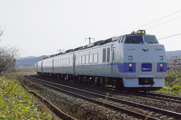 いつもホームに居たら、思いがけなくHM付けた列車が、来ちゃったんで撮っちゃった。 ナンテェ、序でに写した情け無いカットばっかしなんで、ここは一つ気合入れちゃって 駅間を走行するヘッドマーク付けた列車をアップしちゃいました。って偉そうに言っても 逆光写真で御免蒙ります。DF200の貨物レをってんで、静狩辺りを右往左往していた 時に来たのが、下り特急「北斗」札幌行きでございました。アッシなんぞが、周遊券を 通行手形に蒸気機関車追っかけてた国鉄時代から「北斗」と言やぁ、北海道総局の 看板列車、一度は乗りたい憧れの気動車特急だったのです。今じゃ「北斗」は殆んど 頭にスーパーを付けたキハ281やキハ261のJRジェネレーション車両になっちまって、 ジ〜サン思鉄大好きの国鉄御謹製キハ183ノーマル「北斗」は、今年(2018年3月)の 改正で消滅しちゃうんです。しかし、キハ183でも貫通妻面はいけませんやね、ヤッパ 先頭車は、国鉄ボンネット型特急車両の流れを受け継いだ、非貫通が宜しいのです。 でも、「HOKUTO」は無いよなぁ〜。 室蘭本線 長万部〜静狩 2014-5