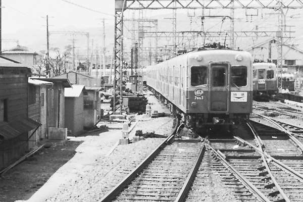 思鉄物故団員松原の親方遺作ネガより、地平時代の阪神西宮を元町方面に向って 発車した、7861形赤胴車の特急「うずしお」をアップいたしました。大手私鉄の中でも 相鉄が大手になるまで、最短の営業キロ数だった阪神でございます。沿線殆んどが 住宅密集地域なんで、ネームドトレイン走らせて観光客運んじゃう程の行楽地なんざ 何処にもございません。なのに「うずしお」なる潮の香漂うヘッドマーク付けた特急を 走らせていたんですね。でも、何時から何時までこんなHM付き特急を走らせてたか、 調べても判んないんです。さて、普通「うずしお」っていやぁ鳴門の渦潮、その渦潮を 見物しに行くのに神戸元町で降りて如何すんの?まぁ本四連絡橋なんざぁ、影も形も 無い頃なんで、神戸港から渦潮見物の観光船やフェリーが、出航してたんでしょうね。 コノ手のヘッドマークって、昔京成が成田までしか行かないのに「水郷」ってHM付けて 特急走らせたけど、もしかして阪神の「うずしお」も同じ様なコンセプトなのかもね? 阪神本線 西宮 1968-8