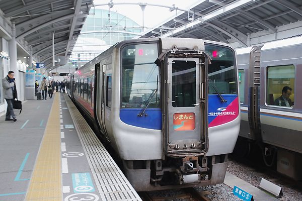 駅撮りに続きまして、HM探検団も四国ネタでございます。四国最後の日は、高松から 高知に移動して土佐電を乗り撮り鉄の心積もりでございます。8時チョイ前駅に到着、 駅撮りしながら待ってると、6番線に乗車予定の8:25発2005D特急「しまんと」5号が、 入って参りました。特急列車は振り子気動車2000系、2100形と下り側にゃN2000系と
