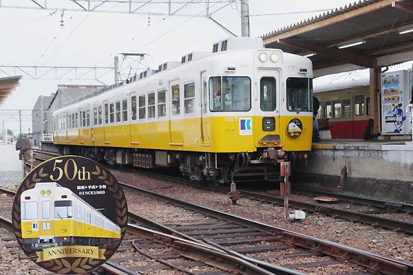 アッと言う間に半月が経ち、ヘッドマーク探検団アップの日が来ちゃいました。しかし、 アップするHMの手持ちがぁ〜〜ってな事で、HDん中引っ掻き回し漸く見っけたのが、 「50th ANNIVERSARY」なるヘッドマークの極めつけ真ん丸板物を付けてた、元京王 5000系の琴電1100形でございました。でも、京王5000系が琴電に譲渡されて50年も 経って無いぞ、50年って何時からなんだろう?てんで、もっ1回HMジックリ見て見りゃ 'SINCE1969'ってコピーが、ちゃんと書いてあるじゃん。琴電1100形になってからじゃ 無くって、新制されて京王帝都で走り始めた、1969年から数えて50年周年ってぇ事で ございました。元京急だらけの琴電唯一の元京王車っと思ったら、なんと!台車は、 京急1000形と同じTS310を履いてるんですよ。まぁ考えりゃ1372mmゲージの京王、 台車取っなきゃ替え1435mmの琴電走れないもんね、でも琴電に余分なTS310って あったのかなぁ? 琴電 琴平線 仏生山 2020-1 |