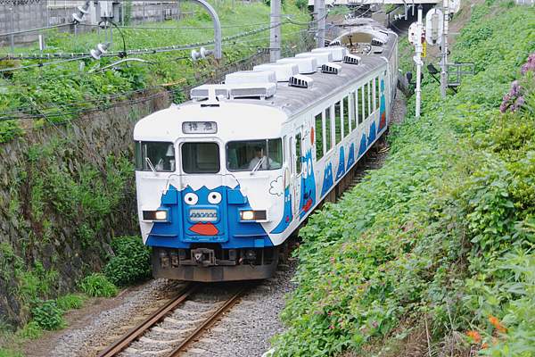 今回のヘッドマーク探検団は、小田急のRSEやJR東海371系に取って代わられ、既に お役御免になった、165系改造ジョイフルトレイン元「パノラマエクスプレスアルプス」、 富士急2000形の「フジサン特急」でございます。国鉄時代は八ヶ岳に日本アルプスの 山々の景観が楽しめる、山岳路線の中央本線が、主な働き場所だった訳だったから、 譲渡先が富士急てぇなぁ、「パノラマエクスプレスアルプス」にピタンコでございました。 出来りゃ、線内運用だけじゃ無くって、新宿発着のスジも引いて欲しかったんだけど、