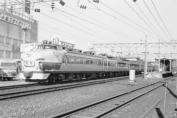 赤字だからって木っ端微塵にされちまった日本国有鉄道北陸本線、2度目は新幹線 敦賀延伸で木っ端ミジンとなちゃうJR西日本北陸本線が、当に庶民のインフラだった 頃に活躍した、急行列車「くずりゅう」をアップしたんで、今回は、均一周遊券じゃ撮る だけで乗れなかった、ビンボ〜鉄にゃチョット贅沢な大阪〜金沢・富山間特急485系 「雷鳥」をアップです。この「雷鳥」って愛称は、モチロン日本アルプスの霊峰立山に 生息している、特別天然記念物で富山県の県鳥’ライチョウ’が、由来でございます。 漢字で綴れば’雷鳥’旧仮名遣いなら’らいてふ’、数多ある特急のネーミング中じゃ、 アッシ的にゃ中々と耳に宜しい響きでした。実際にヘッドマークに使われたのは、漢字 表記の「雷鳥」、まぁ旧仮名遣いはないにしても’らいちょう’なら許せちゃう。ところが、 485系に代わってHMなんて在ったって無くたって全く関係ない、651系が投入されると 愛称まで「雷鳥」から’サンダーバード’に代わちゃった。戦前鉄道省の昔から特急の 愛称てぇなぁ、日本を代表する花鳥風月から名付けるてぇ習わしなのに、「雷鳥」を 単純に英訳して’サンダーバード’だって、どこの誰が、こんなヘンテコリンな愛称を 付けたんだか、情けないの一言って思てんのアッシだけかな?これじゃ富山行特急 ’サンダーバード’発進だよ。 国鉄 北陸本線 小松 1974-1