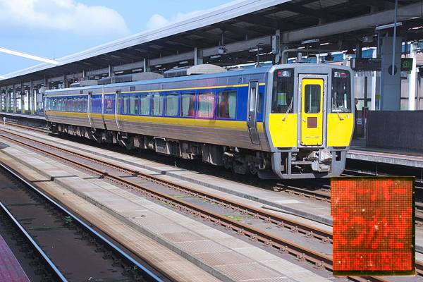 今回のヘッドマーク探検団、JR西日本キハ187系「スーパーまつかぜ」でございます。 最もヘッドーマークって言ったって、実際はヘッドシールよっか始末に悪いLED表示、 編成全体を対面ホームから撮ったたら、貫通扉の処にあるLEDに書いてある愛称が、 サッパリ分かんねぇや。しょうがねぇんで、LEDとこだけ切り抜いて右隅に貼ったけど、 辛うじて「スーパーまつかぜ」って特急名は、判読できるけど色使い地味すぎだよね。 しかし、山陰本線の特急「まつかぜ」でアッシなんかが、思い浮かべんなぁ食堂車や グリーン車を組み込んだ、10〜12両の長い編成で京都〜博多を結んだ、キハ82の 特別急行列車「まつかぜ」なのでございます。それが今じゃ、2両編でキロ無しだって、 オマケに鳥取の次に停まんのが、鳥取大学前っとくりゃスーパーもへったくれも無い と来たもんだ。「鳥取ライナー」本数激減の現状から、当に特急と言う名のボッタクリ 有料快速感十分の「スーパーまつかぜ」でございます。 山陰本線 鳥取 2015-9 Photo by 団長 |
