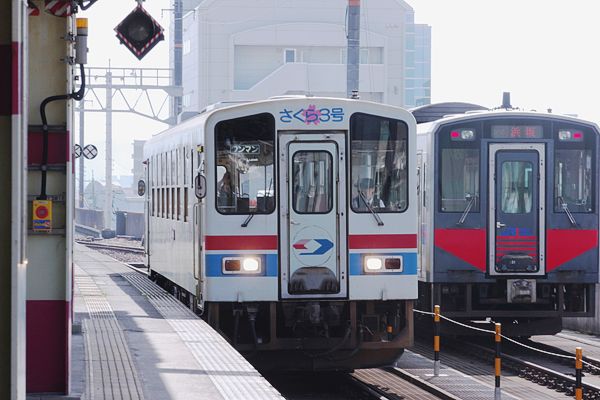 留置線で一休みしているJR西キハ121形の横を通り、鳥取駅4番線に入線するのは、 水戸岡氏デザインの昭和号として観光列車仕様でリニューアル以前、ノーマルな姿の WT3000形3003号でございます。されど、駅撮り探検団なら分かるけど、WT3000形の 何処にヘッドマークが、付いてんの?さては、貨通路の上に書いてある「さくら3号」が、 得意のいかさまHMか!ナンテぇ言わないで下さいね。まぁ、確かにインチキいかさま
