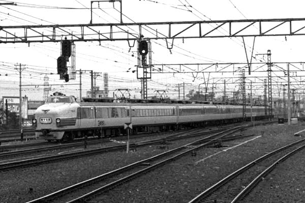 クロハ181でも、外見はパーラーカーには変わりありませんね。何と言っても、製造は僅か 10両のみ、そのクロハ181が編成に組み込まれた、山陽特急「ゆうなぎ」新大阪⇔宇野 1017M,1016M。活躍の場所が東海道から山陽道に移ったとはいえ、新幹線は未だ 新大阪までのこの時代在来線の特急はまだその輝きを失ってはいなかった。「ゆうなぎ」も 11両編成中に1等車3両、食堂車2両(モハシ180を含む)2等車6両という今考えれば、 夢のような超豪華編成、モチロン、オール座席指定。そんな正統派特急も68年10月の ダイヤ改正で消滅。やがて、正統派特急の必殺仕置き人新幹線は、その魔の手を西へ 西へと伸ばし、彼らを葬り去った。写真の方はイマイチですが、被写体に免じてお許しを。 東海道本線 新大阪 1968-3 |