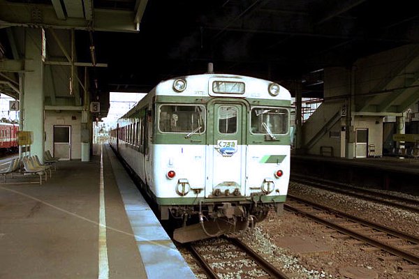 お座敷車に転用されたため引退となりました。車体色はクリームと赤のV字でしたが、 緑+黄緑ラインを経て、冷房化改造後は快速ミッドナイトと同様の車体色になりました。